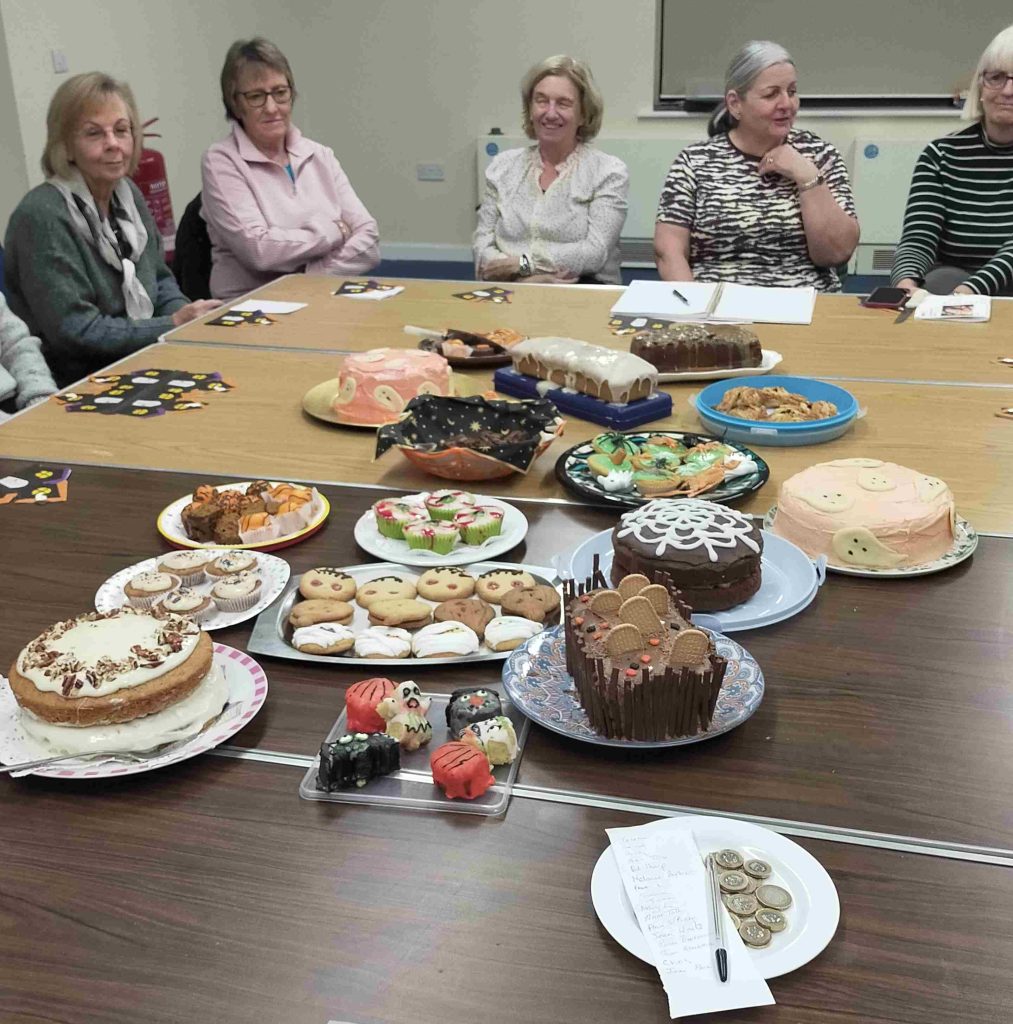 Baking Beauties – Halloween – We held an evening meeting so those who have other daytime commitments could join us. 20 members were there to sample a great selection of bakes with a little duplication. We did have 2 wonderful ‘ghost cakes’ – the same recipe but slightly different appearance – can you spot them in the photo? It was interesting to hear the trouble members had gone to preparing the pumpkins for their bakes – not the easiest task! A very enjoyable and tasty evening.